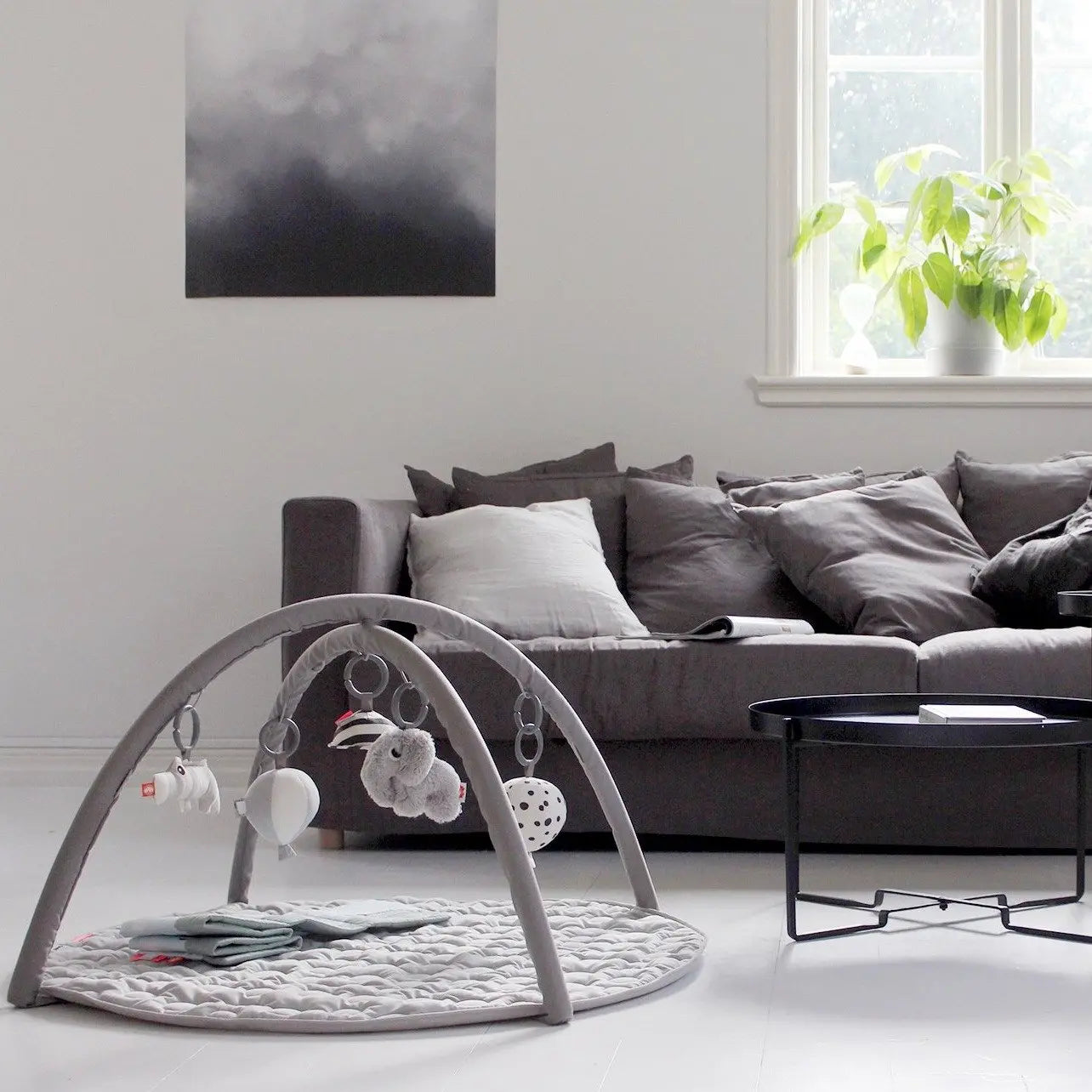 - The soft quilted mat offers a safe and warm play area for your baby. The arches are attached with Velcro and are easy to remove for storage or if you want use the mat on its own.