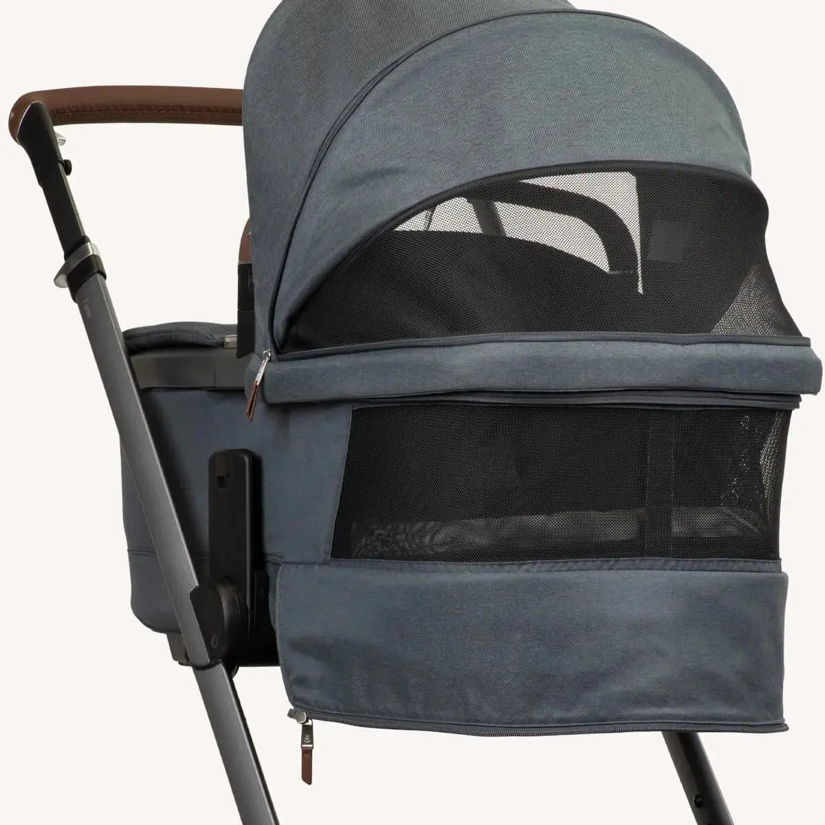 - Height Adjustable Bassinet – The Close2Me adjustable carrycot moves up or down, ensuring parents of all heights can comfortably lift their baby in and out without back strain.